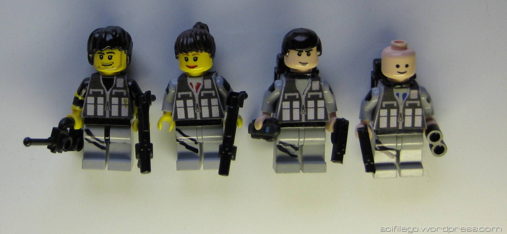 The Atlantis Field Ops Team Minifigs. It took a couple of tries to make them and their guns. I made the vest on the computer. You can email me at qapla01@hotmail.com for the vest decal.
