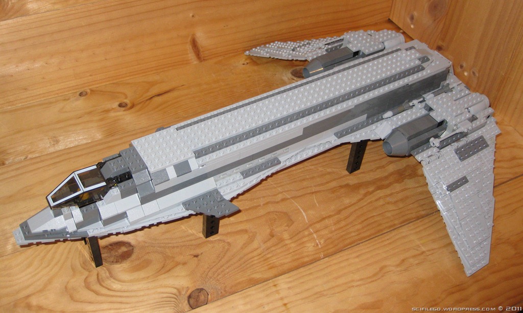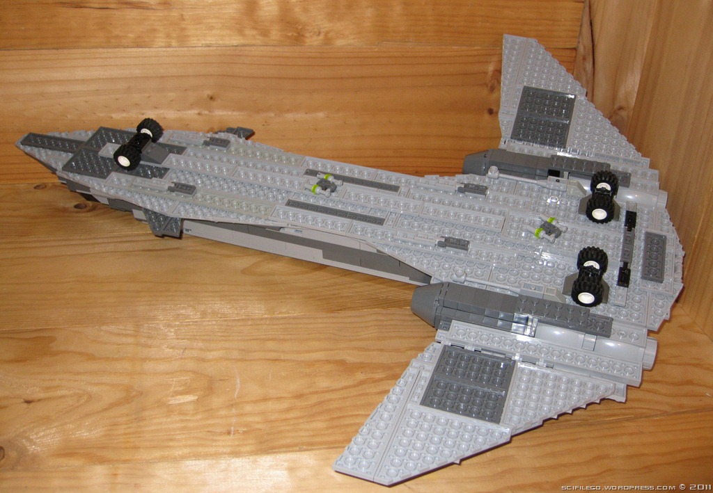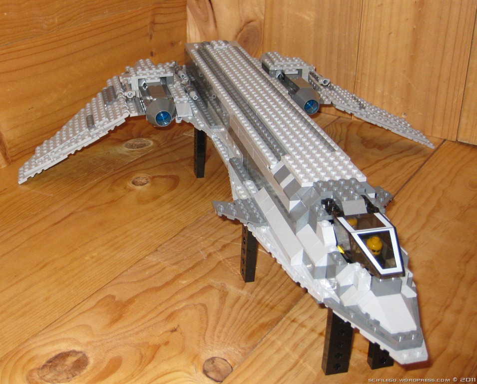 This is my version of the Jet in X-Men. It is clearly quite different to the actual jet and I’ve made a lot of modifications to it since I first got it. I’m thinking the wings need to be a bit bigger, I’ll probably make another version of it when I get around to it. The interior has a command centre, cargo area, infirmary and quad-bike.![]()