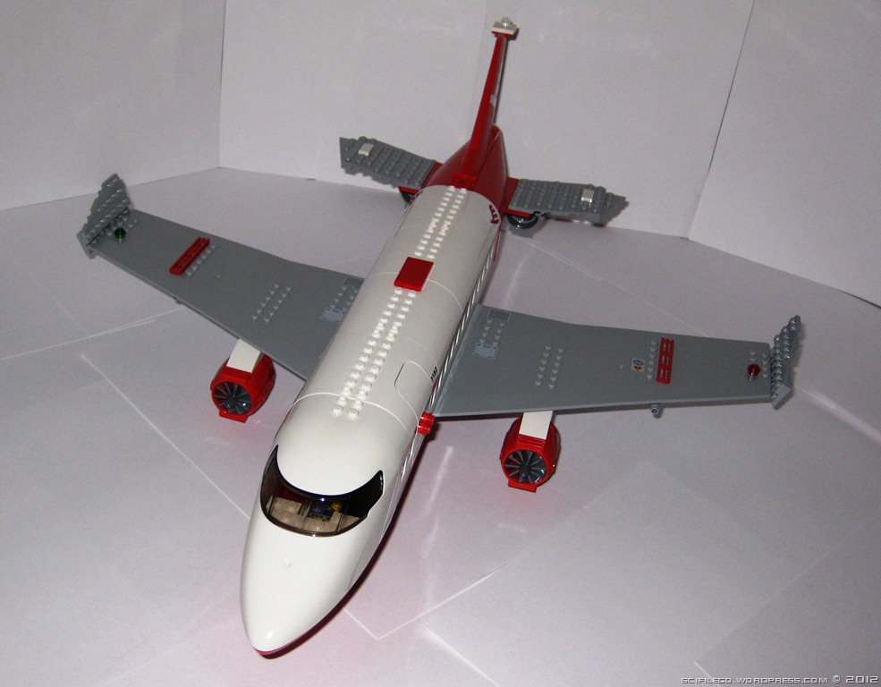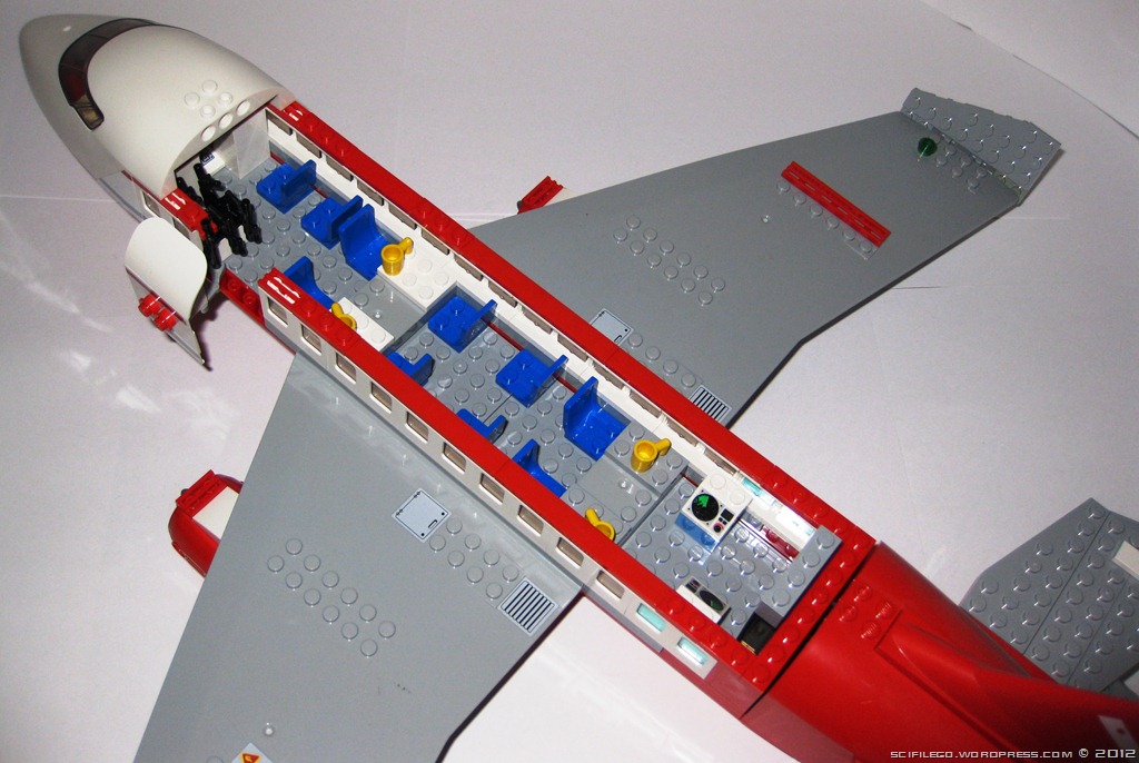 This is my modified version of the passenger jet I got in a lego set. I added missiles, extra seats, an armoury, and a small tactical centre. I also moved the wings back, replaced the ugly landing gear with retractable landing gear, modified the tail and added extra engines.