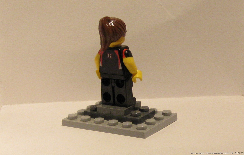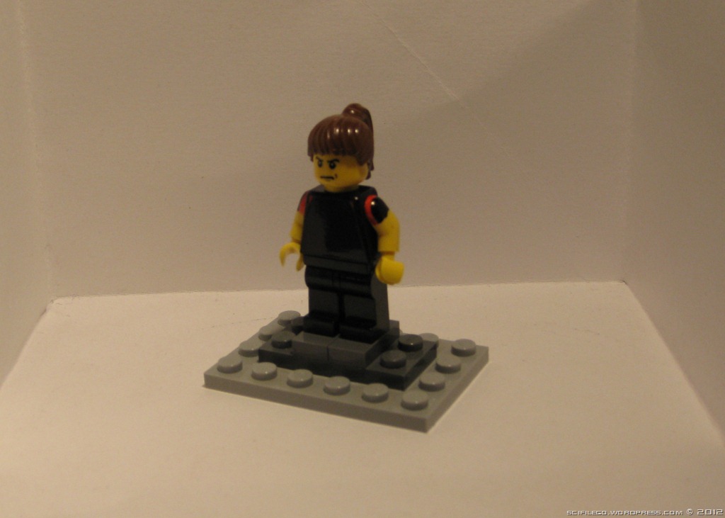 Here is the first version of my Katniss Everdeen Minifigure. It does need work, I am not happy with the expression, the hair or the front. I made the decals on the computer myself. They are available on the custom Minifigures page. Apologies for the poor quality of the photos. I am doing the best I can to fix it.