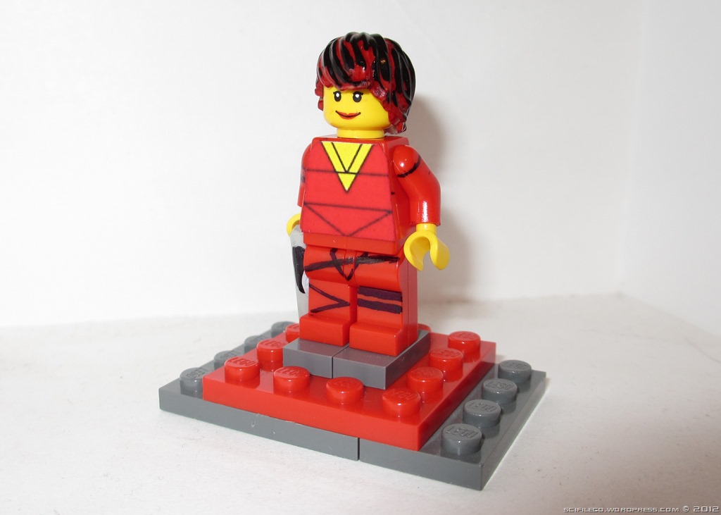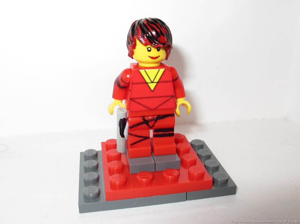 Here are some photos of my Rommie Minifig. I made the chest piece on the computer and printed it. As for the arms and legs I very carefully drew it on with permanent marker. I used permanent marker to colour the wig.