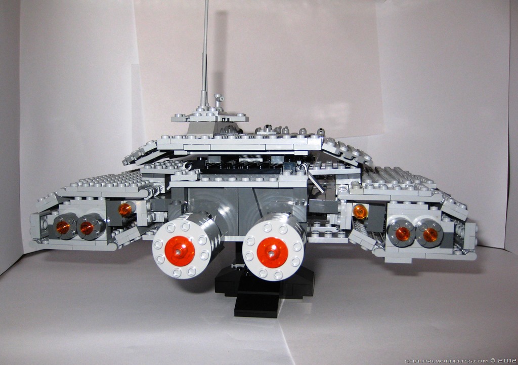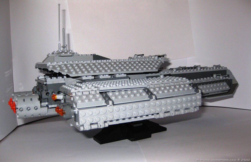 I thought I would put up a repost of my real first major project – the USS Odyssey from Stargate. I know it is far from perfect and I am considering a remake soon. I have actually made many versions of the Daedalus-Class and it was my first lego project to be photographed.