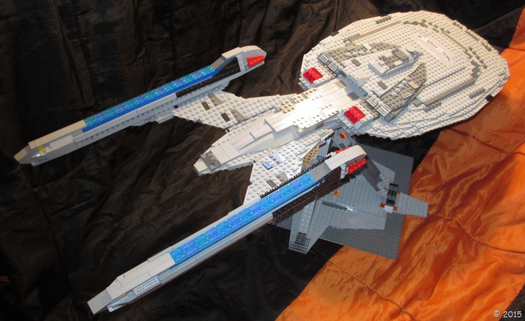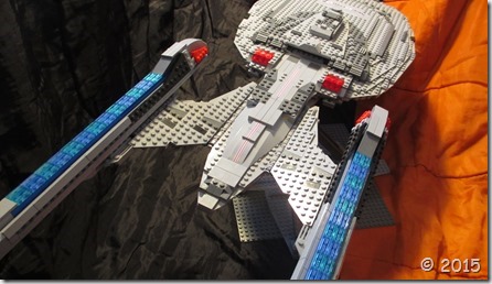 The biggest challenges were the warp nacelles and getting the angles right on the bottom of the stardrive. I redesigned the stardrive section many times, and eventually ended up flipping a lot of pieces and using them in unusual ways, but I am really happy with how it has turned out now. The nacelles were always a problem for me. For probably the first time, I actually left the model alone until I could find more transparent blue grill pieces online to buy. I simply could not find any other way of making that section of the nacelle. I was extremely excited when I was able to purchase the pieces at an event and finally able to finish the ship. The warp nacelles are probably the weakest part of the ship, and the one section i would still like to improve. I was never happy with the design, but couldn’t think of anything better.
