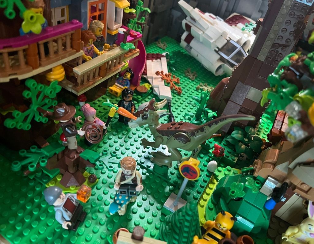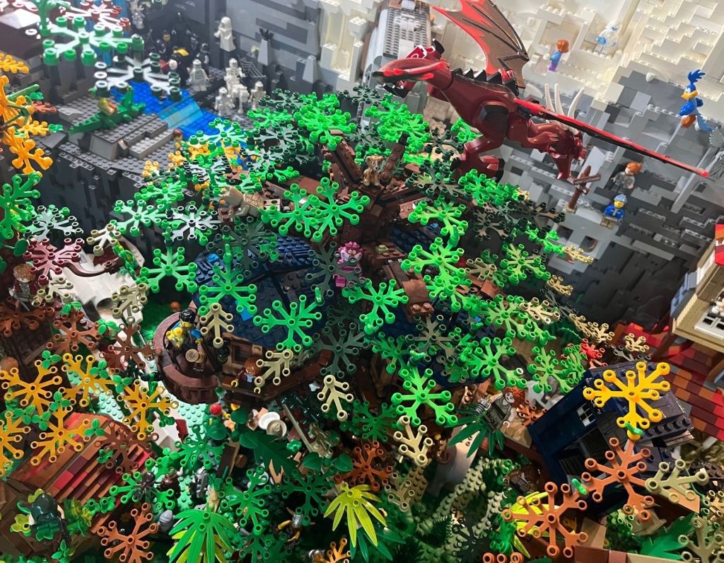 Welcome to the Brik forest. It is a huge forest built entirely with LEGO bricks. It includes the Disney train, a massive battle scene between the forest people and the invaders from the Sci-Fi universe and a mountain border. The mountain climbs so high there is snow at the top! The forest has dozens of Minifigures and lots of pop culture references as the different worlds crossover. In the Brik forest anything is possible. Which stories can you spot?