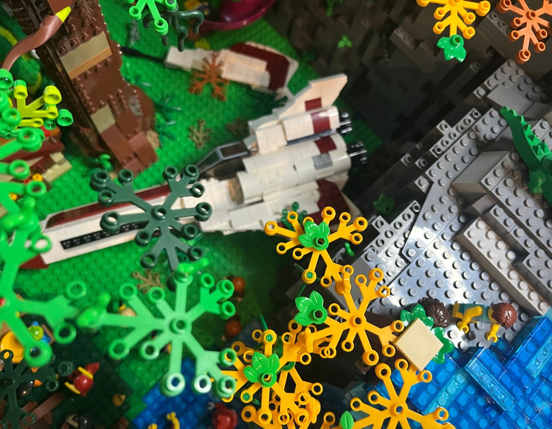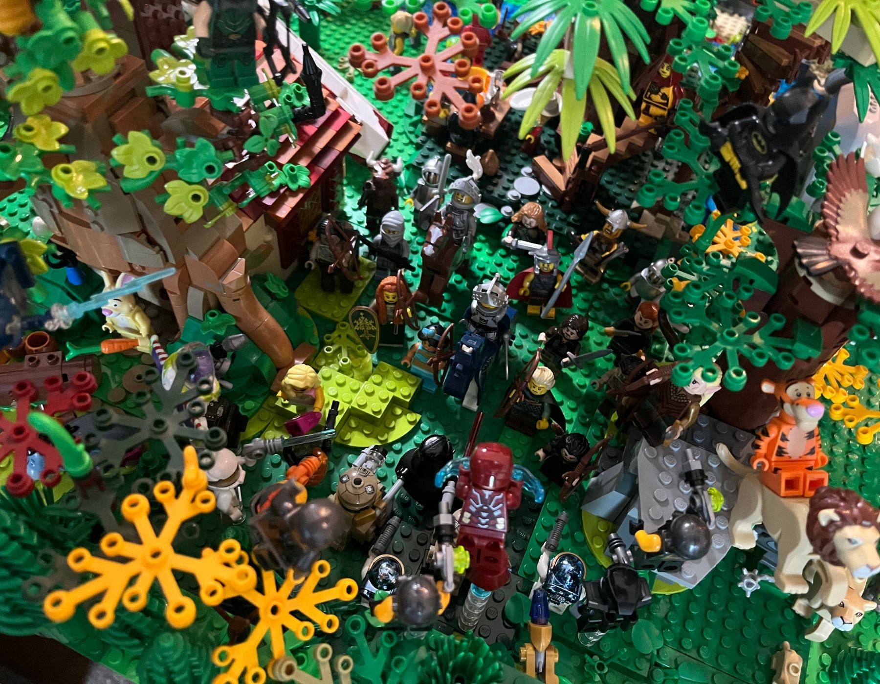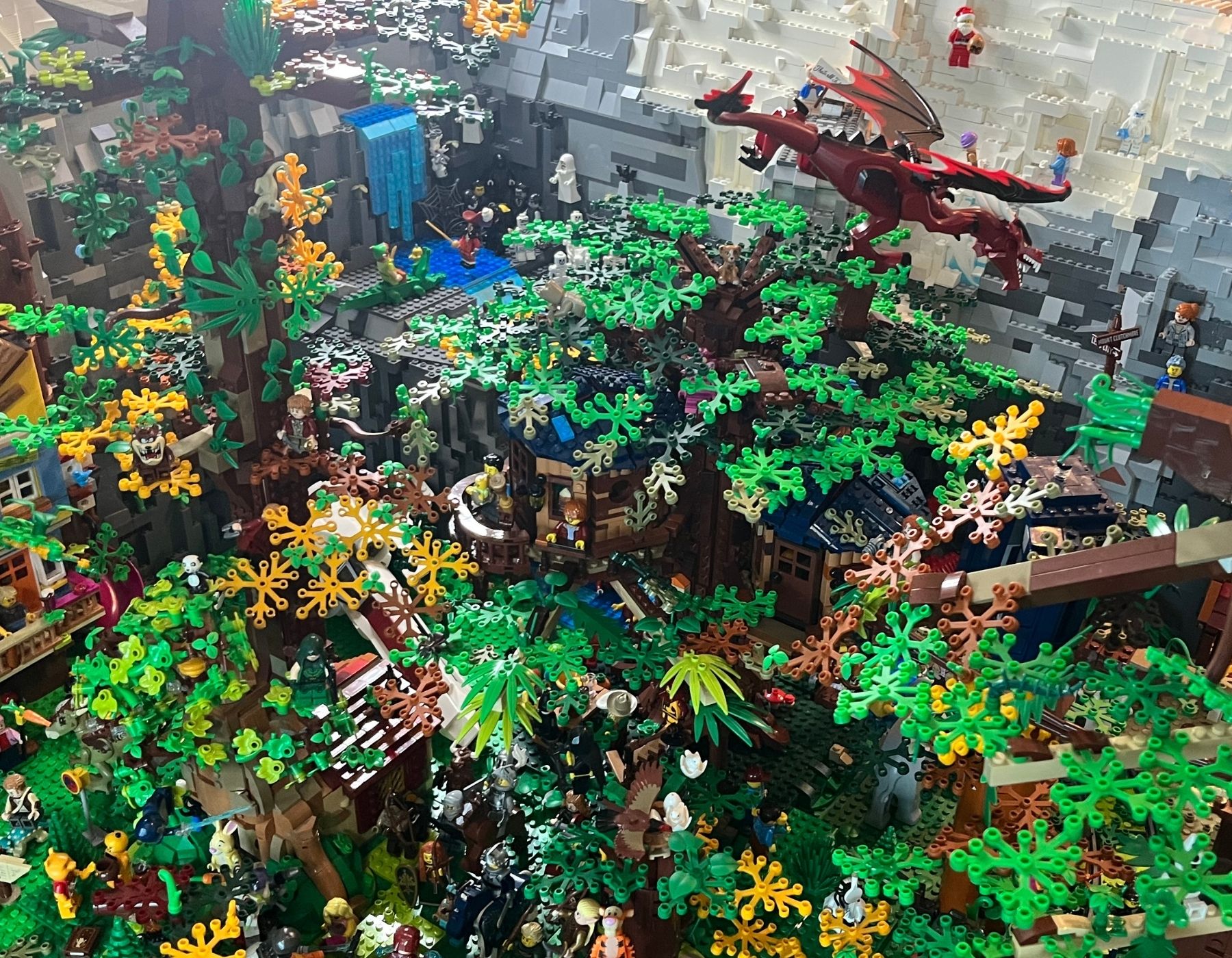 Welcome to the Brik forest. It is a huge forest built entirely with LEGO bricks. It includes the Disney train, a massive battle scene between the forest people and the invaders from the Sci-Fi universe and a mountain border. The mountain climbs so high there is snow at the top! The forest has dozens of Minifigures and lots of pop culture references as the different worlds crossover. In the Brik forest anything is possible. Which stories can you spot?