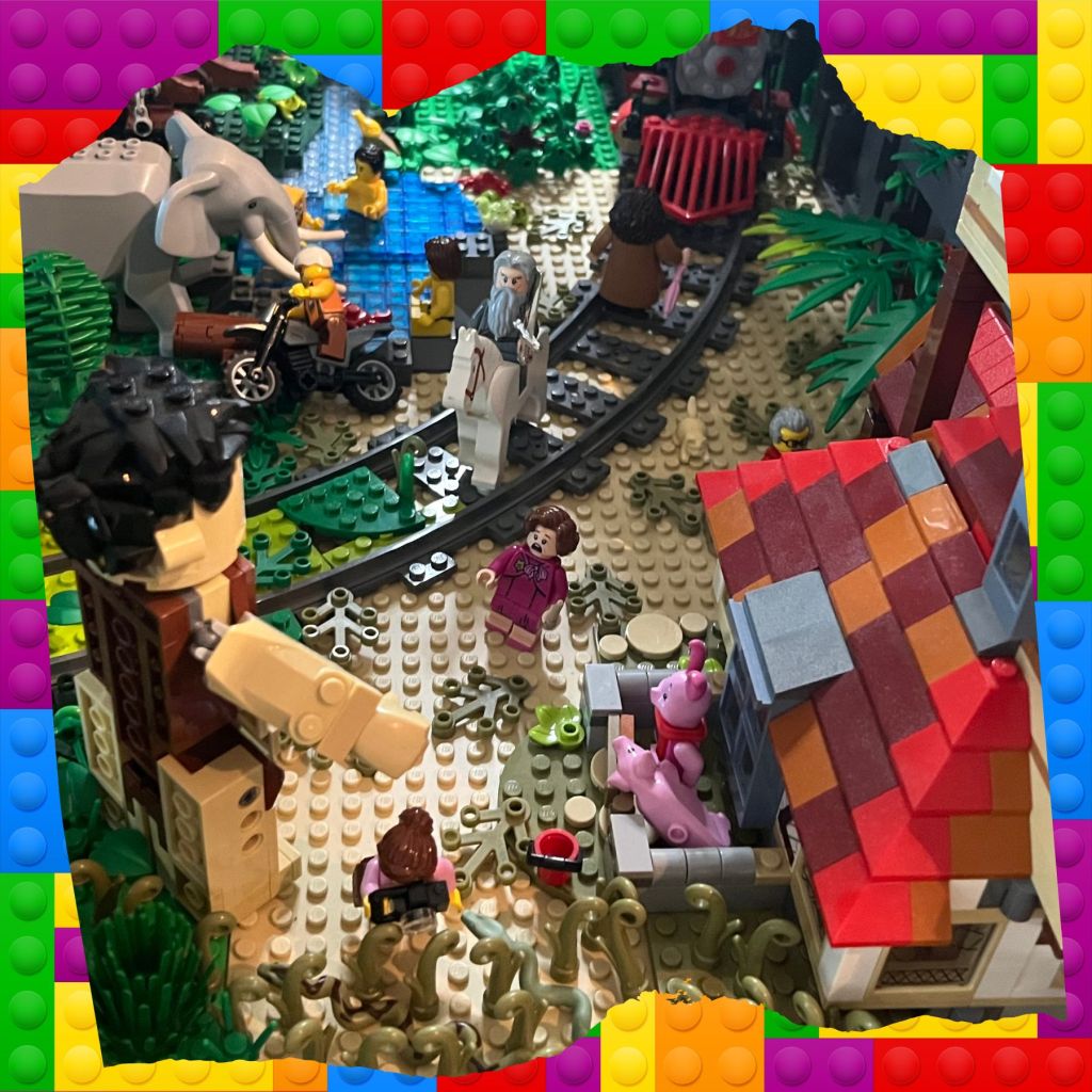 Here are some up close snapshots of the most important part of the forest – the LEGO Minifigures. Here are some snapshots of the Minifigure stories and crossovers between universes. There’s a Stargate, a haunted scene, Tigger riding a Tiger and an epic battle scene with lots of familiar characters. What cool details can you spot?