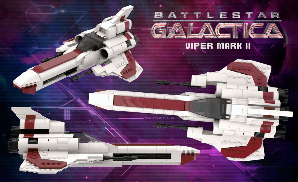 This LEGO® Battlestar Galactica MOC is a detailed Minifigure-scale replica of the Mark II Viper.