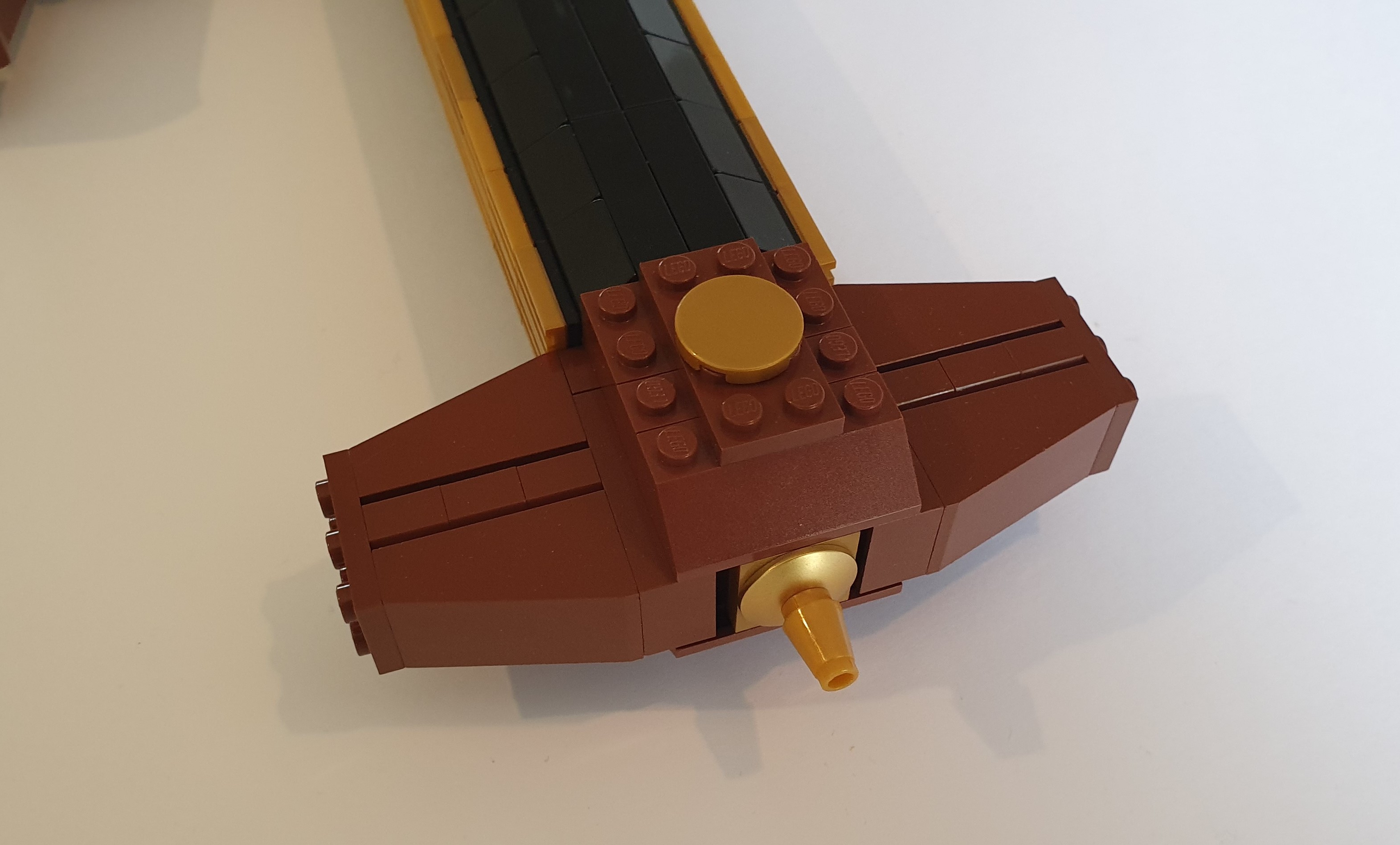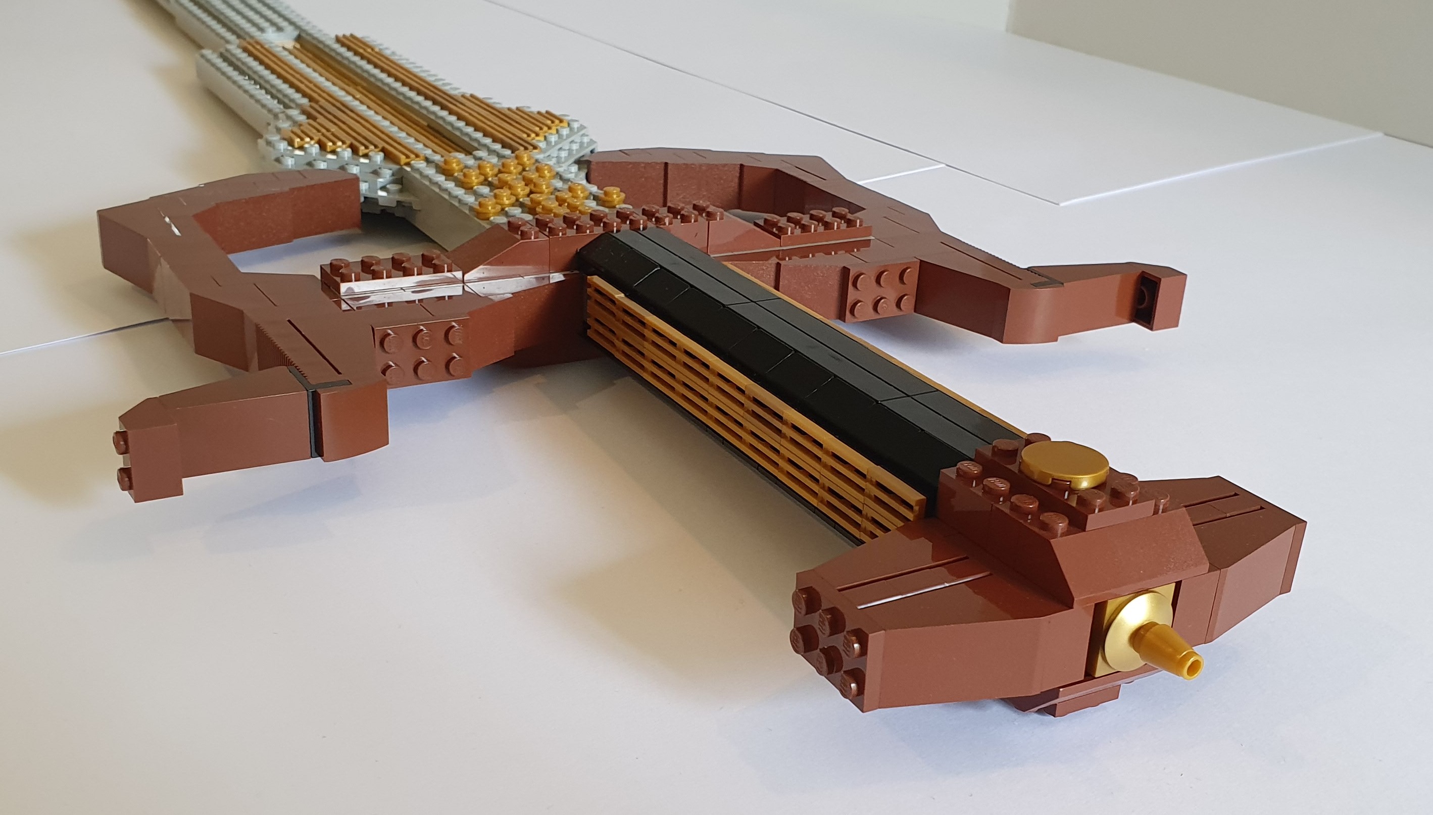 I don’t like the idea of a LEGO® MOC that only looks right from one side, so I replicated the details underneath the sword as well. While not as detailed as the front due to a lack of pearl gold pieces, it still has the right shape and colours!