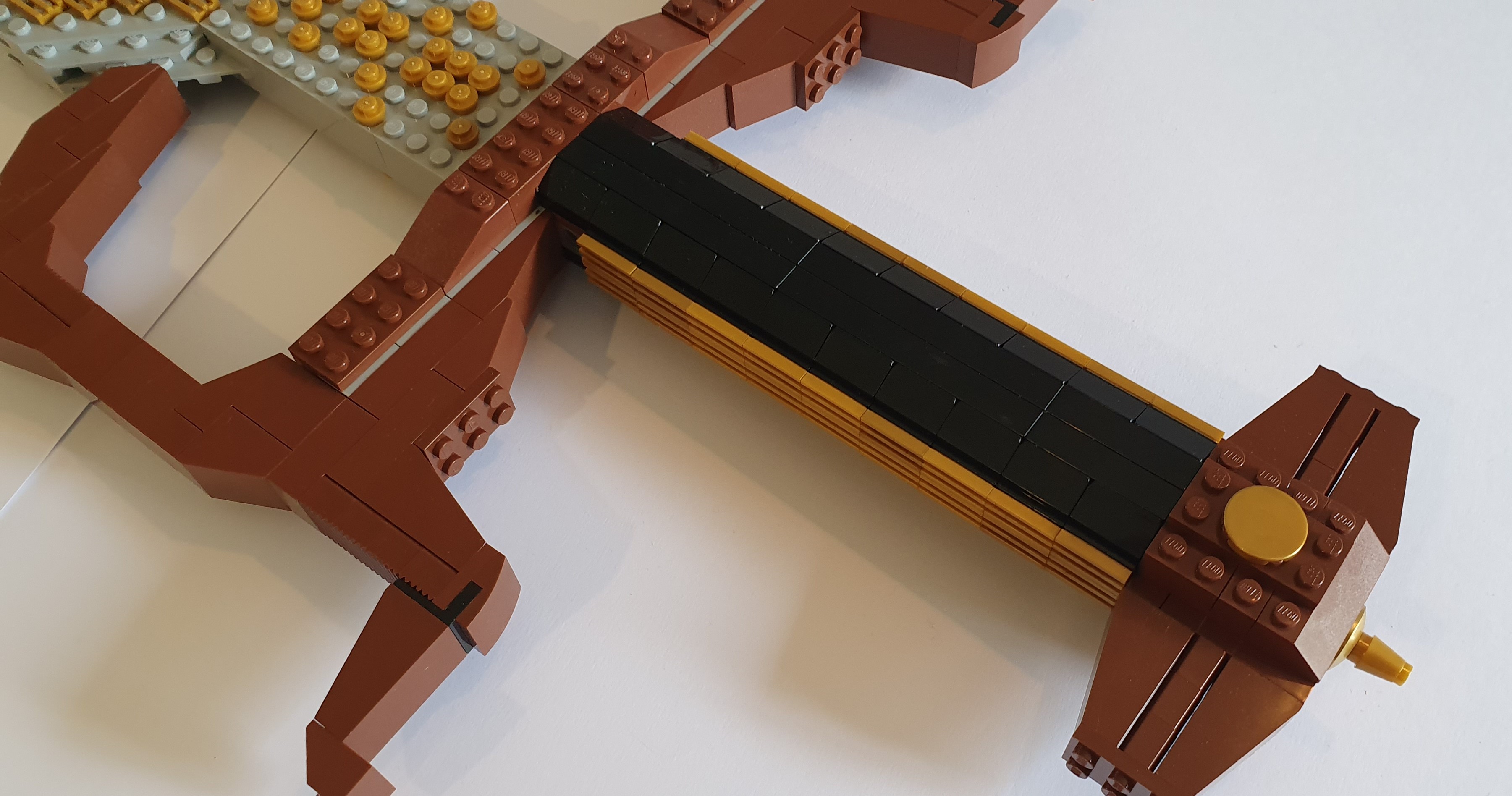 The final stage was the extensions from the hilt to the blade. This was a challenge because pearl gold bricks are hard to come by and the closest substitute was brown. However, I didn’t have a lot of spare brown elements, and given this build needed to be ready so fast I wasn’t able to order any. With a lot of SNOT (Studs not on top) I was able to make use of the few parts I had to get the shape right. This part of the sword isn’t very stable, and falls off easily, but it isn’t part of the main frame so it holds together for a few swooshes and photo ops!